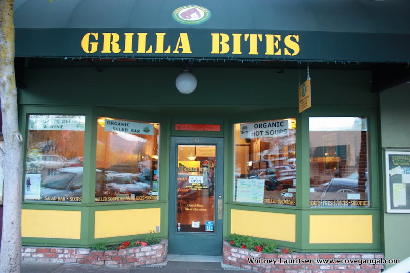 Last year on my West Coast trip with Robert Cheeke during his book tour we stopped in Ashland, OR to grab some food for the road from their local coop. The town was so beautiful that we decided to crash there for the night - it's Shakespearian, organic, vegan-friendly vibe completely won me over. We sought out a place with WiFi so we could book a place to stay and update our websites, which is how we stumbled upon GrillaBites. The green certifications on the windows and vegan items on their menu lured us in, but we had no idea how much of a treat we were in for.