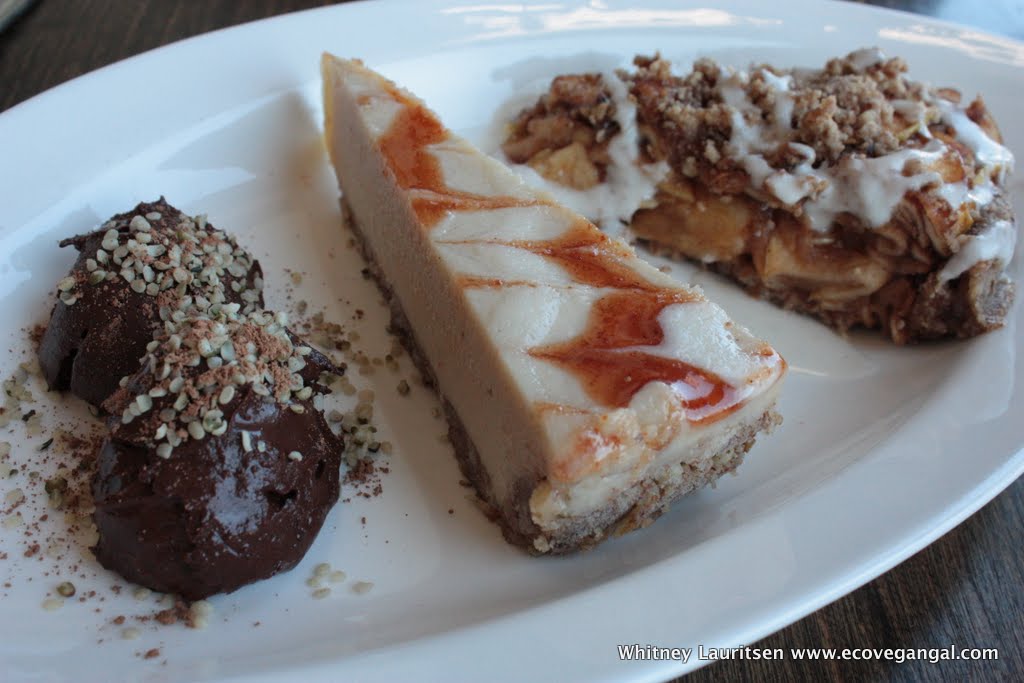 5 years later I finally made it down to Costa Mesa to 118 Degrees, Jenny's new restaurant that gets rave reviews from raw vegans, vegan vegans, and even non-vegans. It's located amongst some other great healthy establishments, like one of the Native Foods locations, and the interior is absolutely gorgeous. It's best described as casual-upscale - great for a relaxed meal or a special occasion. The food is stunning on the plate, magical on the tongue, and satisfying in the belly. The most memorable item I had was the Apple Pie - it was incredibly fresh and perfectly sweet - an American favorite turned ultra healthy without compromising the traditional flavors.